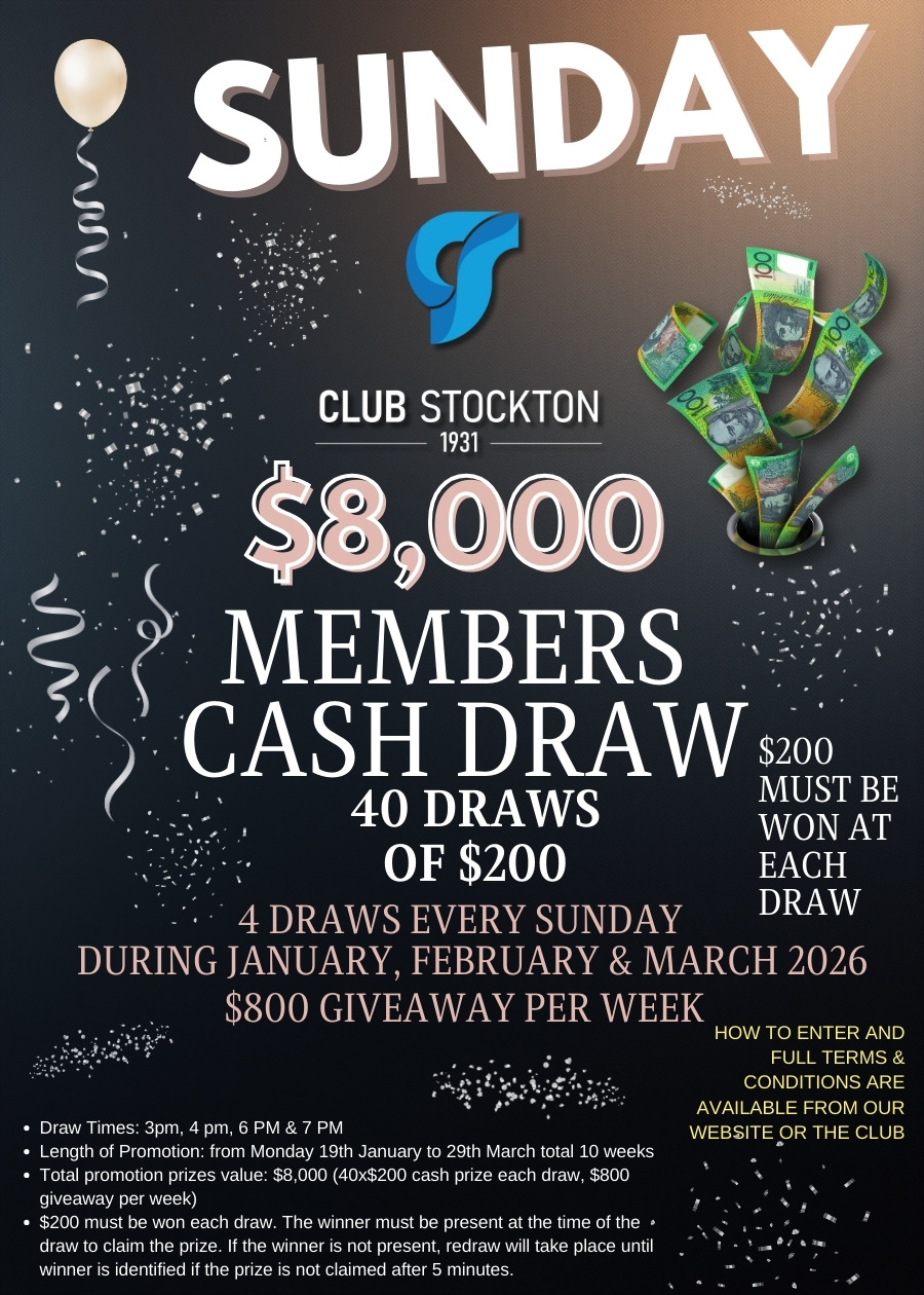 1. The new terms for the Club Stockton Raffle Promotions 2025 will commence from Thursday 20th and run to Sunday 28th December 2025.