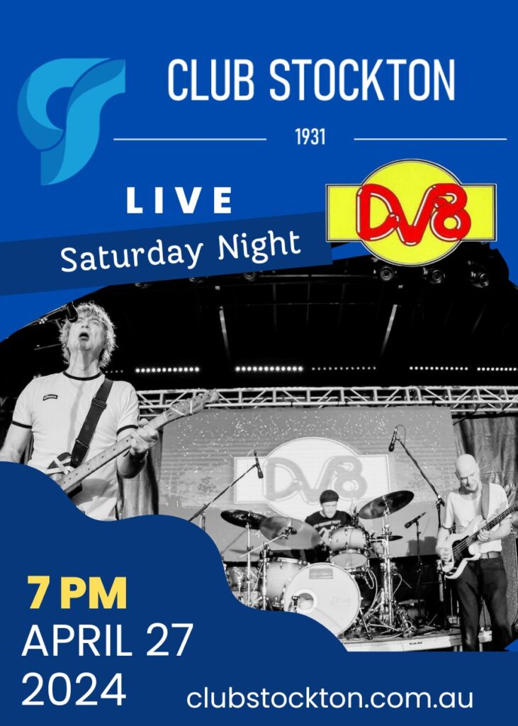 DV8, the legendary Newcastle band is ready to rock your world at Club Stockton! Join us at Club Stockton for unforgettable nights filled with classic DV8 entertainment,