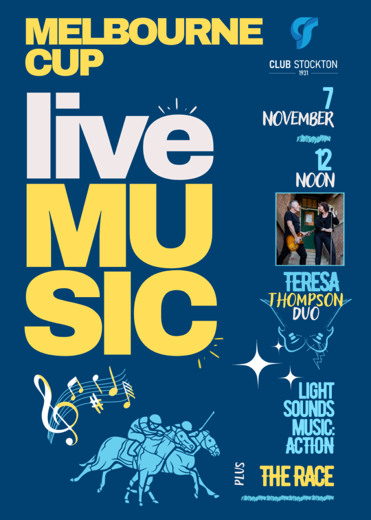 Club Stockton warmly welcomes you to a spectacular pre-2023 Melbourne Cup live music extravaganza featuring the Teresa Thompson Duo!